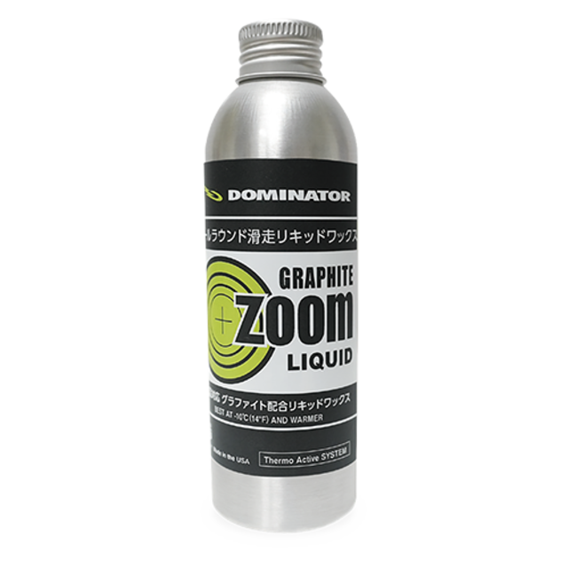 滑走用リキッドワックス ワックス自体が雪の状況変化を雪温で判断し、ワックスの硬度を変化させる特質機能サーモアクティブ搭載のリキッドワックス。 ZOOM GRAPHAITE LIQUIDは静電気を抑えるマイクログラファイト配合のリキッドワックスです。 缶をよく振って、滑走面に薄くリキッドを塗った後、フィニッシュクロスでしっかりと磨いてください。ブラス&ホースヘアコンビで仕上げると効果的です。 グラファイト配合・滑走用リキッドワックス 0℃〜-10℃