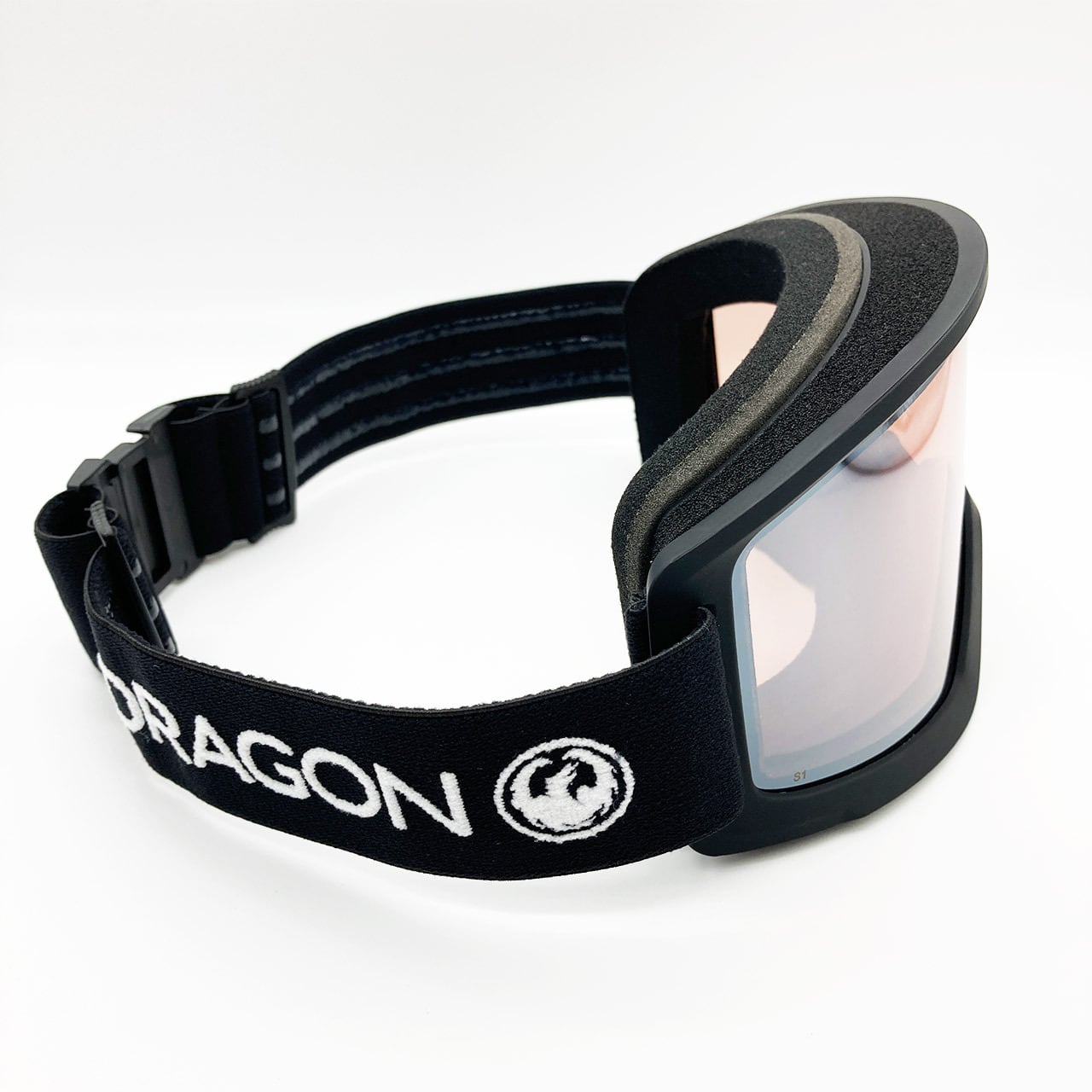 ブラックベースにホワイト色のウーブン(織り)ロゴが入った、DRAGON定番のストラップデザイン。DX3 Lフレームはマット (艶なし) 仕上げ、DX3フレームはグロス (艶あり) 仕上げを採用。