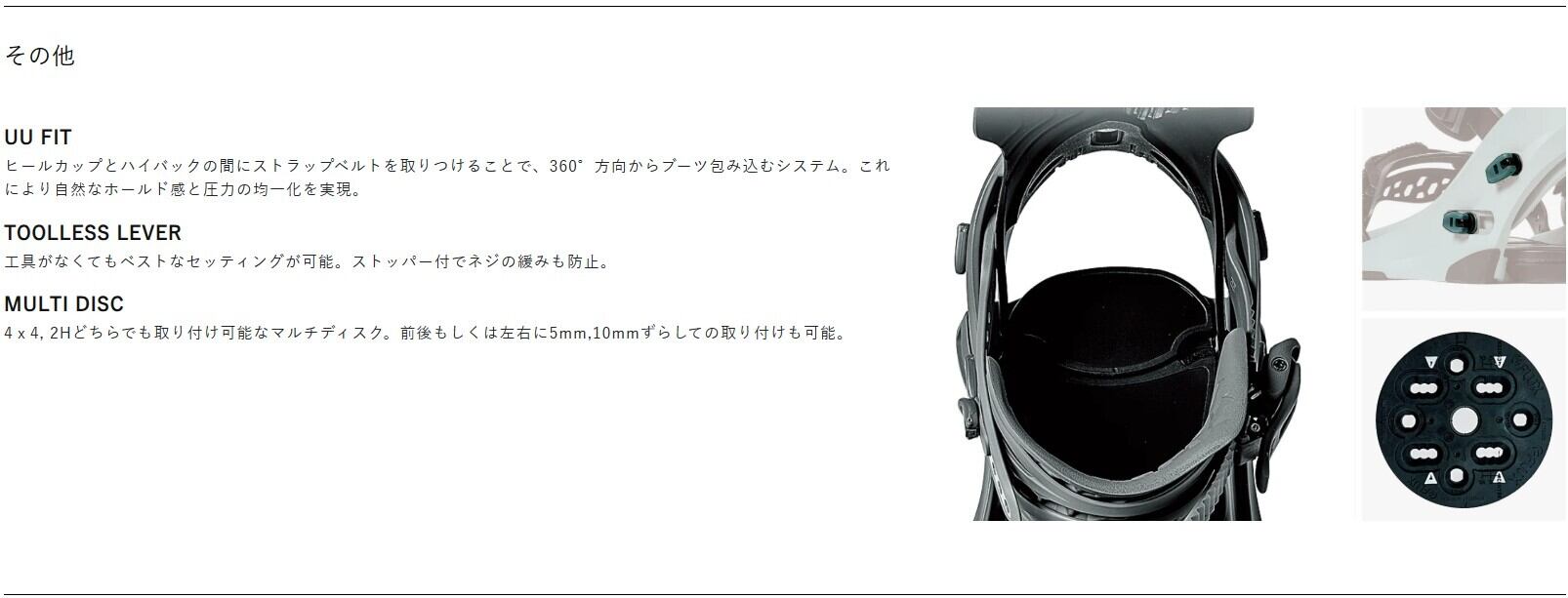 調整機能が充実したこで、様々な場面や滑りのスタイルに合わせて細部なセッティングも可能となりました。 また、通常のフットベッドより4mm高さをあげたBoost FootOn採用により、さらにクイックな切り返しと、安定したエッジングを可能としました。